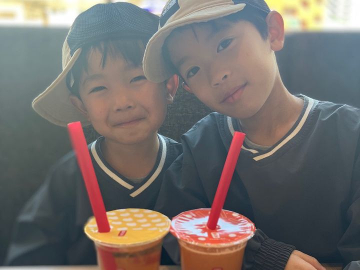 ふたりで決めたのは、「ゴンチャ(Gong cha)」のモーニングティーセットでした。税込420円というお手頃な価格で、お茶のおいしさはもちろんのこと、小腹を満たせる「叉焼メロンパン」という個性的なメニューを堪能していました。おかげで、パパが居ないさみしさは紛れているようでした。