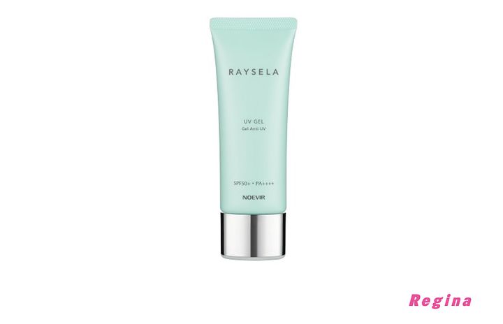 『ノエビア レイセラ UVジェル』は、高密着オイル(*1)を配合しているのが特徴で、みずみずしく伸びるジェルがピタッと肌に密着し、白浮きせずに透明感のある仕上がりに。