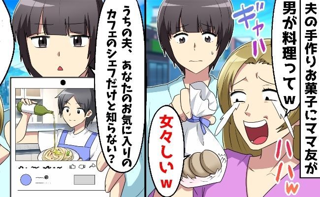 「男の料理は女々しい」「安月給の埋め合わせ?」料理上手な夫を見下すママ友→夫の正体を知ると…?