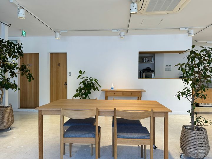店内は、白い壁とウッド調のテーブルとシンプルでおしゃれな空間。
