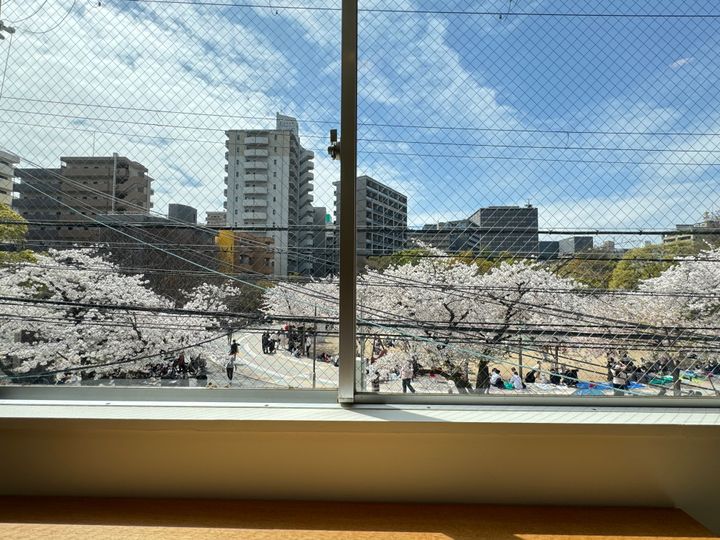 trip roomは、窓から江坂公園の木々が見えるのですが、春は桜が咲いてさらに癒されますよ♪