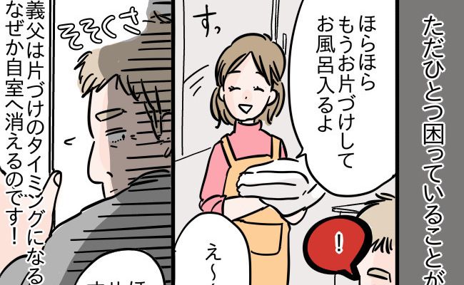 いつも子どもたちが「じいじ、ばあばと遊びたい!」と言うと、快く遊んでくれる義父母。義父母と子どもたちが楽しく過ごしている時間はうれしくて、ありがたい気持ちでいっぱい。しかし、ひとつ気になることが。義母は子どもたちと遊んだら、一緒にお片づけまでしてくれるのですが、義父はというと……。