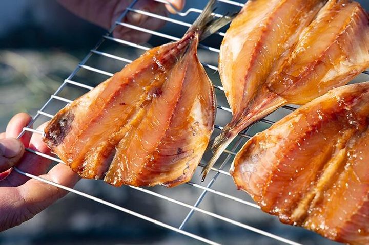 「脂ののったサバやサンマなどの魚でももちろん美味しいのですが、むしろカマスやシイラなど味が淡白な魚を美味しく仕上げるのに向いていると思います。魚本来の旨味だけを凝縮しているわけではないので、みりん干しは邪道とする干物職人もいます。確かに、本当に旨い魚は塩だけで干したほうが良いかもしれませんが、味変としてみりん干しで甘じょっぱく仕上げるのもありだと私は思います。選択肢は多いほうがいいですから」