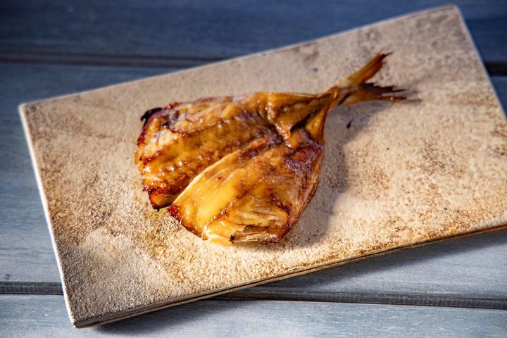焼き方も塩干しと同じで、身側から火を当てて表面をコーティングするのが基本。旨味を含んだ水分と脂が下に落ちてしまうのを防ぐためだ。皮目はお好みで少し焼く程度で良い。
