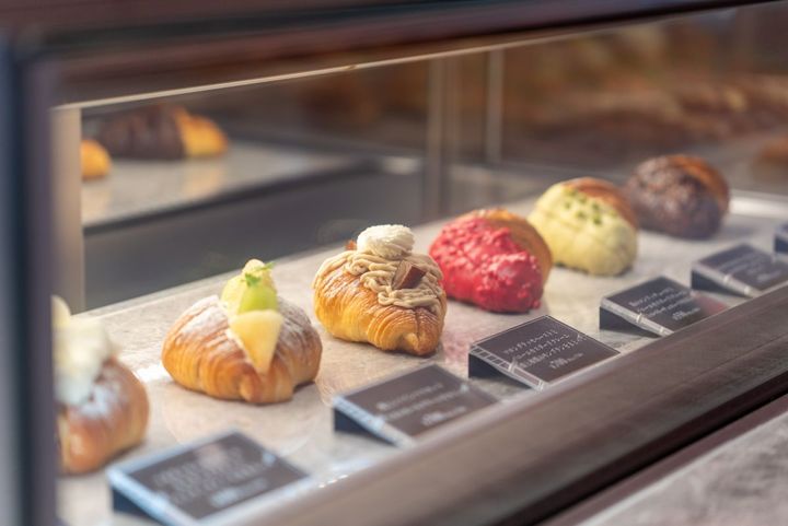 こぢんまりとしたミニマルな造りの店内は、焼き上がったクロワッサンがジュエリーのようにずらりと並ぶおしゃれな空間。