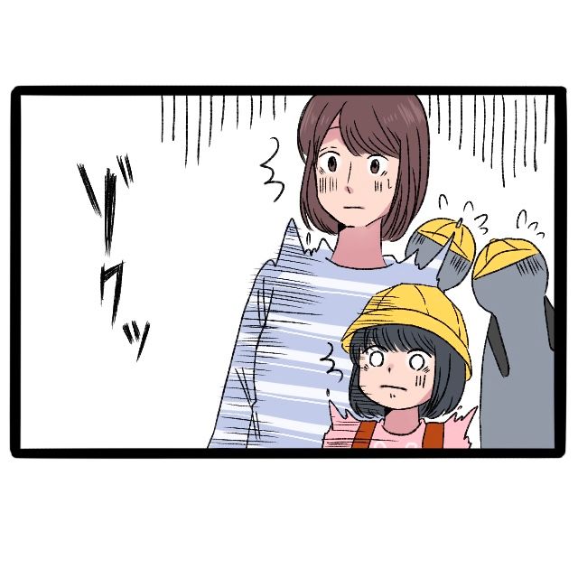 寒気がするつぐみちゃんとママ、その様子に集まって来た子ども達も気づいて、何事かと思っていると、