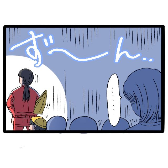 そして次の日の朝、集合時間1分間、7:44、一番乗りで到着する立石さんとヤエちゃん、そして7:45、集合時間ぴったりにつぐみちゃんとママも集合、それから7:46になると・・立石さんの表情がみるみるうちに変わり・・(汗)