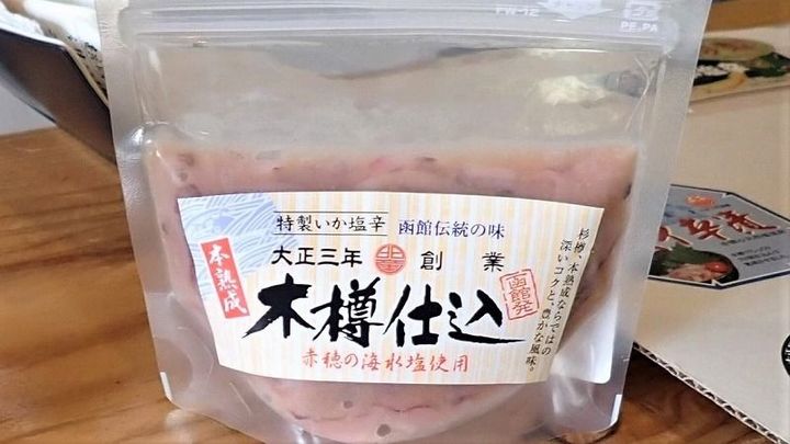例えば、小田島水産食品の数あるイカ塩辛製品の中でも最もオーソドックスなもので、長年愛されている「木樽仕込」の塩辛。