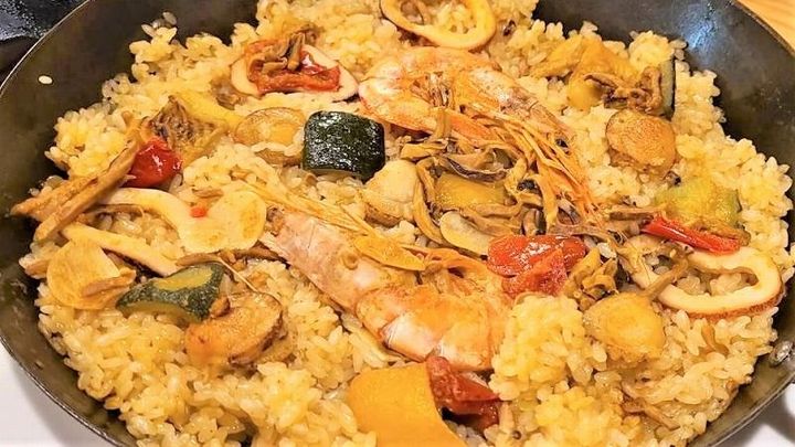 イカの塩辛がアクセント!こちらも人気のパエリア