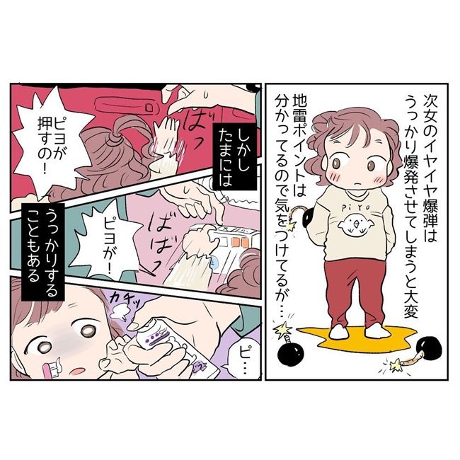 2016年生まれと2018年生まれの、くせっ毛姉妹を育児中のママ・さざなみさんが描く育児マンガ。心やさしい3歳差姉妹との日常生活から、ほっこり心温まるエピソードをお届けします!イヤイヤ期真っただ中だったころの、次女ちゃんの成長の様子をご紹介♪