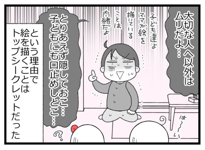 「仕事で絵を描いている」と知られることで起きうるトラブルを避けるため、子どもたちにも口止めをしていたエェコさん。漫画を描くときも、フェイクを織り交ぜながら身バレしないように気を付けていましたが…?