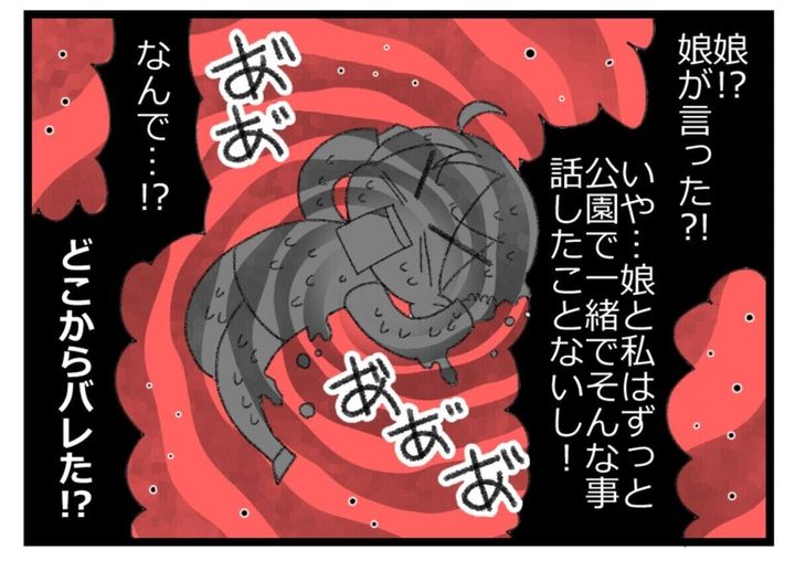 勘のいいママ友は、たまたま読んだ育児漫画から「エェコさんだ」と気付いたのですね。ママ友側にはまったく悪気がなさそうですが、思わぬ経緯で知られてしまうという怖さを感じるシーンでした。