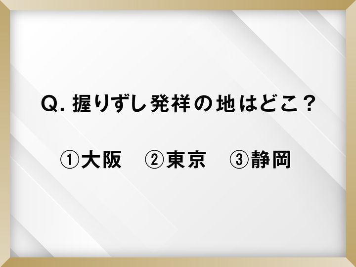 3. 【グルメトリビア】鮨好きなら知ってる?「握りずし」の発祥地は ①大阪 ②東京 ③静岡