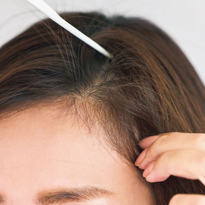 分け目がずっと同じだとクセがついてしまい、前髪がぺちゃんこに。コームの持ち手側の先端を使って、分け目の位置をサイドにチェンジ。