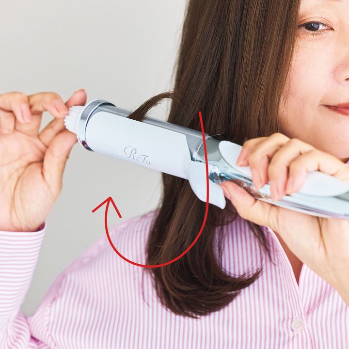 しっとり柔らかな立体カールがつくれます。キープ力も◎。リファカールアイロン プロ 38 ホワイト¥25,000(MTG)