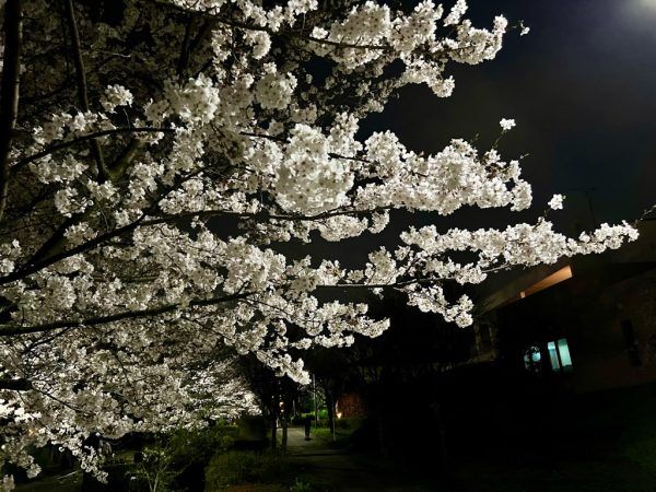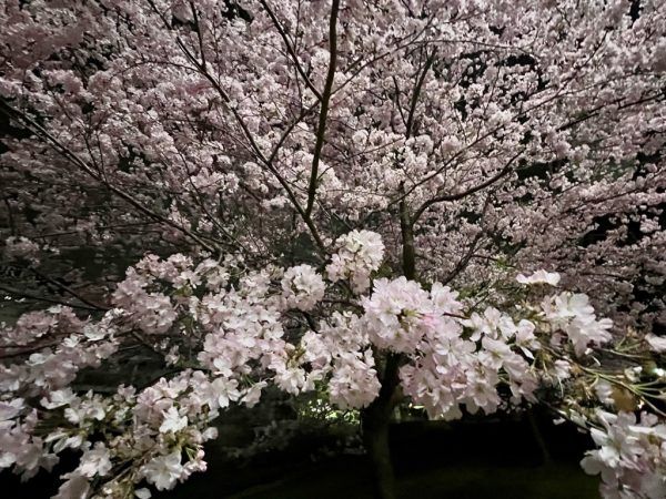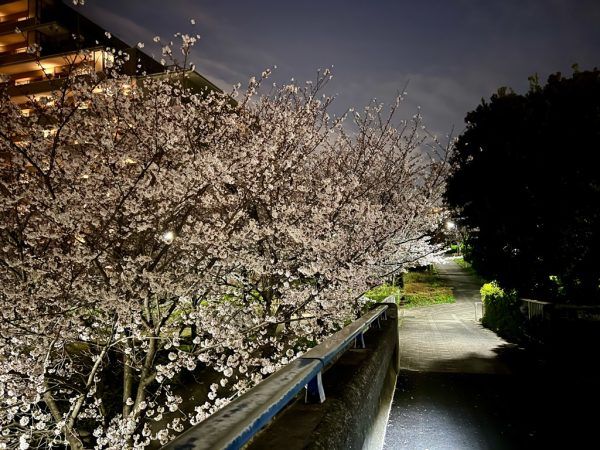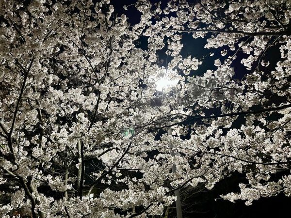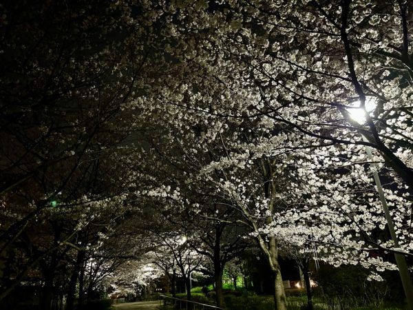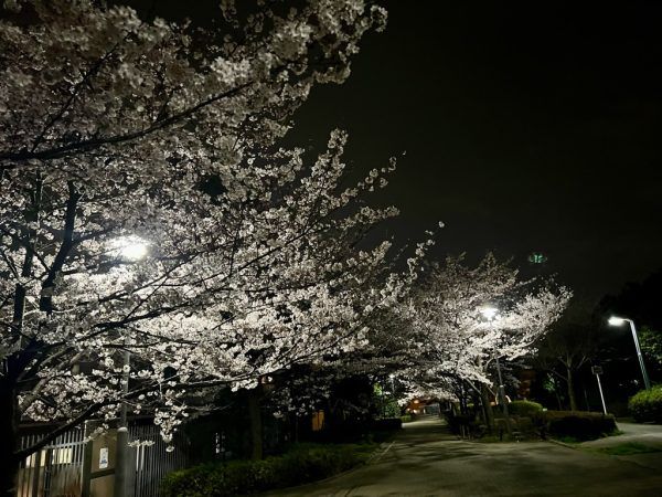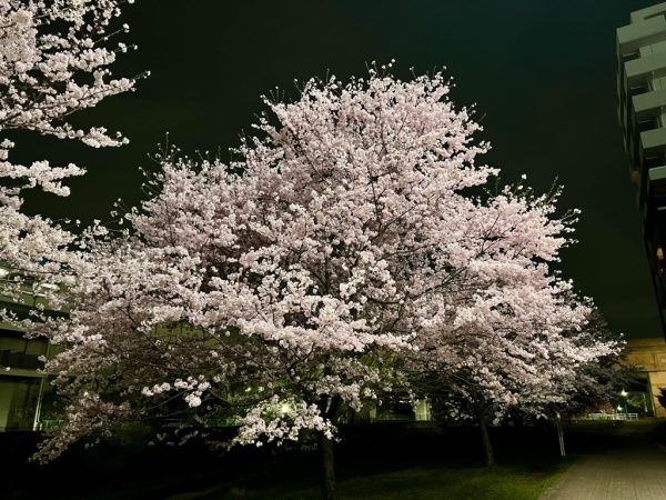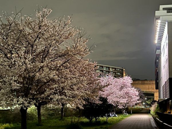 桜が満開になりましたね!お昼は忙しくてなかなかお花見ができない方でも楽しめる、夜桜スポットですよ