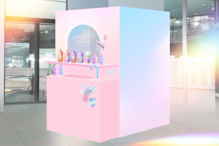 NewJeansが出演するCMで使用されたセット部屋を再現したフォトブースや、広告ビジュアルの巨大パネルなど、ブランドの新しい世界観を体感することができます。