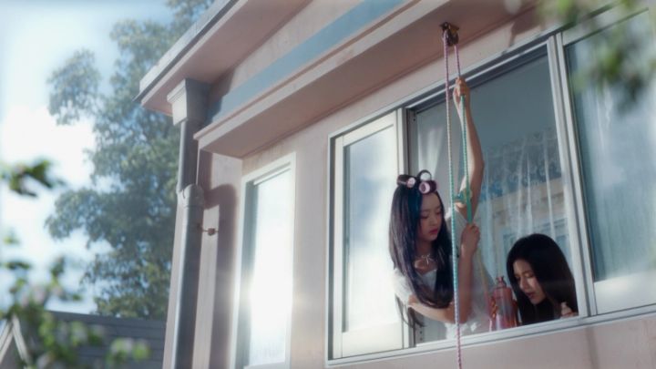 NewJeansの起床シーンから始まり、引っ越しの日のそれぞれの朝の過ごし方を映しています。