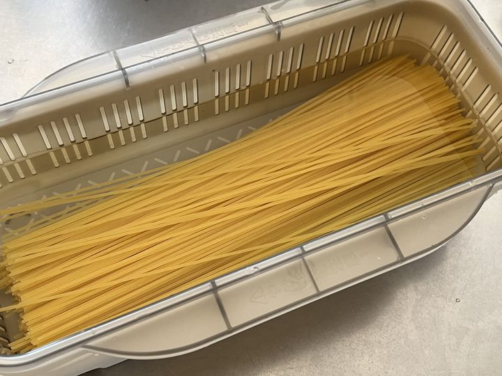 ① 4人分のパスタなら+11分! 水切りもスムーズ