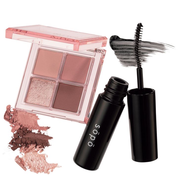左から ローソン【&nd by rom&nd】メロウアイパレット PK01¥1,350(韓国高麗人蔘社)、ファミリーマート【sopo】カラーマスカラ 12¥968(ノイン)