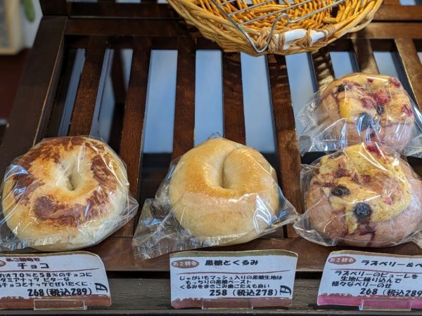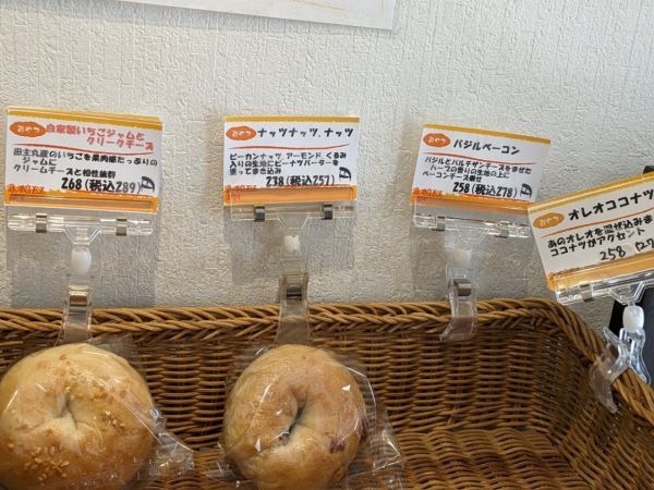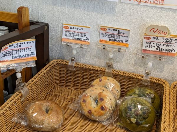 こじんまりとした店内の入り口には並べられたベーグルの数々。