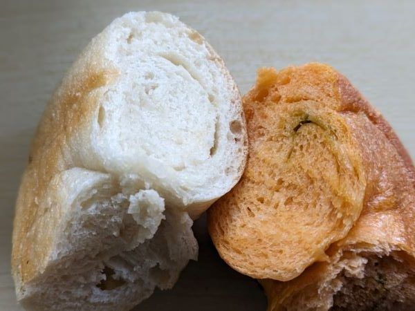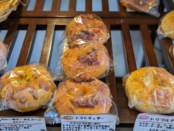 今回は、「プレーン」と「トマトチェダー」をいただいてみることにしました。切った時から、手に伝わる感覚が、かなり期待できます。食べてみると、予想以上のモチモチ感に思わず感嘆の声をあげてしまいました(笑)。このモチモチ感は相当なレベルです!「トマトチェダー」、同じくモッチリした生地に、たっぷりのドライトマトとチェダーチーズの味がしっかりとしていて贅沢なお味でした。