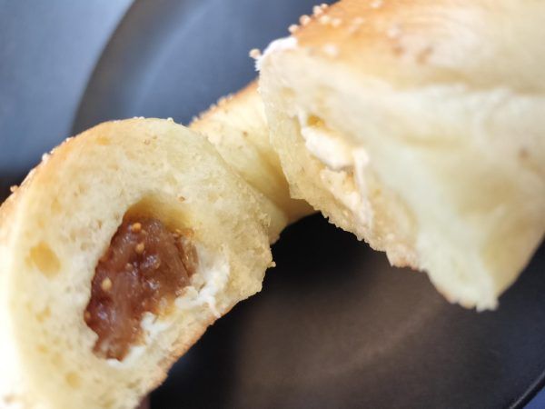 まずいただいたのは「いちじくクリームチーズベーグル」。 断面を見てみると、いちじくの餡とクリームチーズがぐるっと詰まっていました!