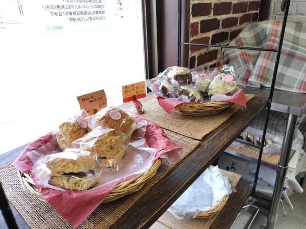 ベーグルが並ぶ反対側にはこれまた美味しそうなスコーン。 日によって内容は変わるそうですが、常時3種類ほどのスコーンを用意しているそうです。