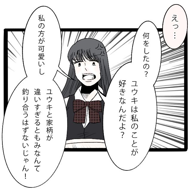 「何したの?ユウキは私のことが好きなんだよ?私の方がカワイイしユウキと家柄が違いすぎるともみなんて釣り合うはずないじゃん!」
