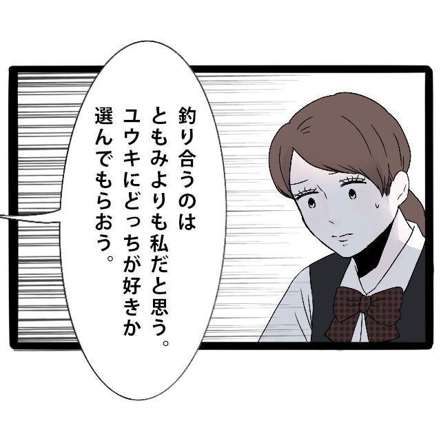 「釣り合うのはともみよりも私だと思う。ユウキにどっちが好きか選んでもらおう。」