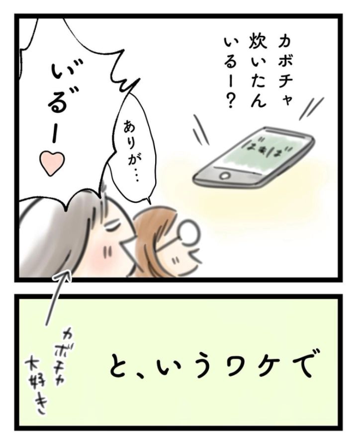 子どもの替え歌って神がかる時ありますよね。ほんと聴いてて飽きない!ばぁばが炊いてくれたカボチャが好きで、嬉しかったんでしょうね次女ちゃん。カボチャのチャチャチャを熱唱♪声が大きかったので近くに住むばぁばン家にも丸聞こえ!家に着くと、涙目でウケてるばぁばがいました(笑)。