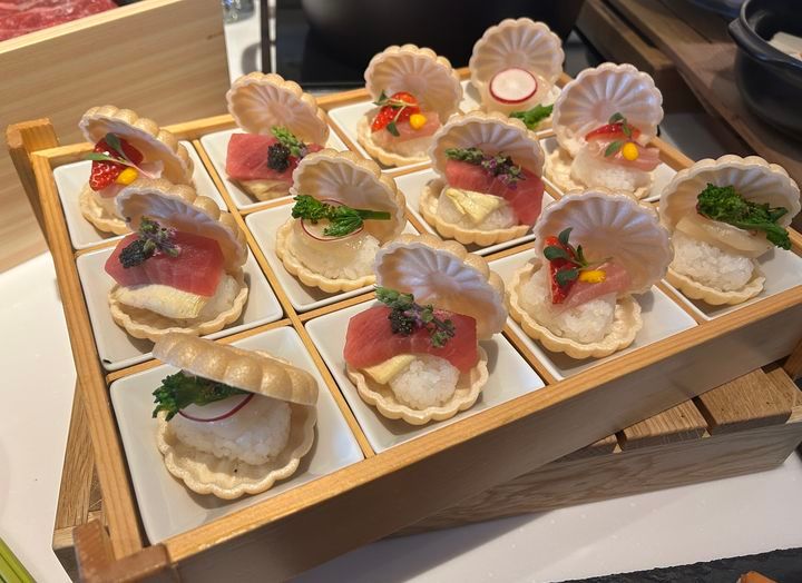 たくさんの料理に中でも、ぜひご注目いただきたいのは「もなか寿司」。「グランドメルキュール」の象徴とも言えるグルメで、その土地ごとの名物をお寿司の具材として取り入れているんです♪
