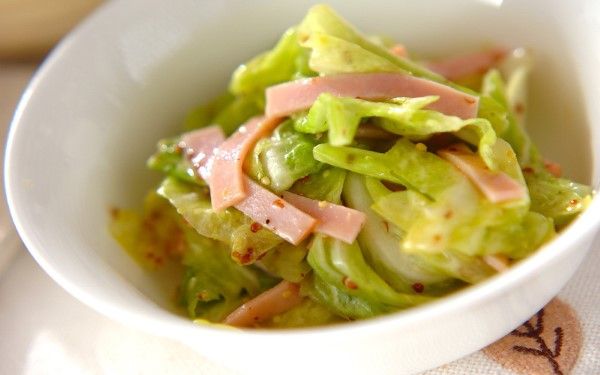 手でちぎったキャベツをマリネ液で和えましょう。ハムも入れるため、そこそこの食べ応えがあります。お好みで残っている野菜を加えてもOK。さっぱりとしていて箸休めにもなります。