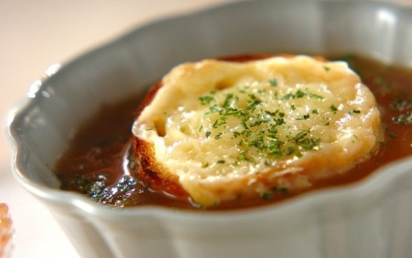 玉ネギの甘みと旨味が詰まった、洋食の人気スープです。玉ネギは炒める前にレンジ加熱すると、炒め時間を短縮できます。お好みでバゲットを添えれば、献立がボリュームUPしますよ。