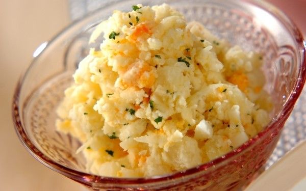 人気のポテトサラダにゆで卵をプラスするだけで、見た目も美味しさも格段にUP! 卵は粗く刻んで食感を残すのがコツ。洋風炊き込みご飯とワンプレートで盛り付ければ、カフェ風ごはんの出来上がりです。