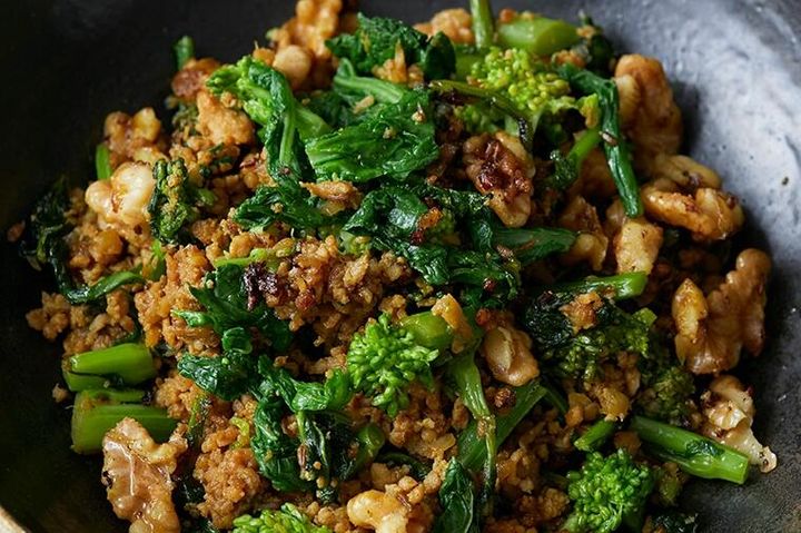 香り豊かな“菜の花の鶏そぼろカレー炒め”