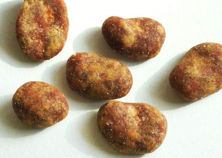 パッケージから出すと、茶色くて小さな揚げそら豆が登場。