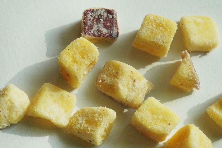 揚げサツマイモですが、油っぽさはゼロ。干し芋や芋ケンピなど、ほかのサツマイモ製品より食感が軽く、これはいける!エンドレスに食べられそうです。