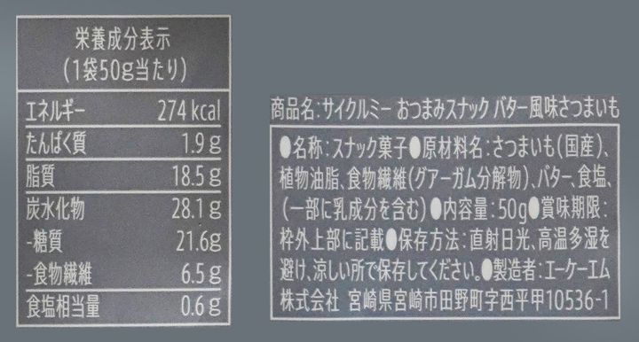 その一つが「サイクルミー おつまみスナック バター風味 さつまいも」1袋50g 267円です。