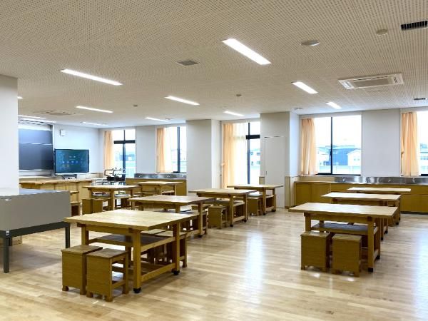 白で統一された清潔な印象の家庭科室。きっと最新の調理器具がそろっていることでしょう。