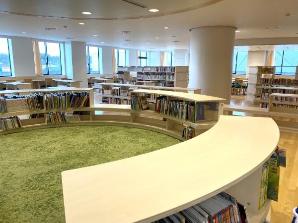 図書室の円形の閲覧スペースは、リラックスして本が読めそう。