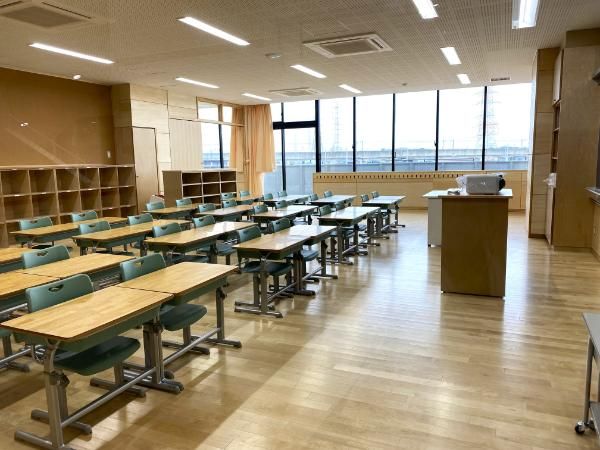 全ての普通教室には、窓側に多目的スペースが設けられています。通常64㎡の教室が88㎡に拡大され、多様な学習に対応できる「未来の教室」とのこと。