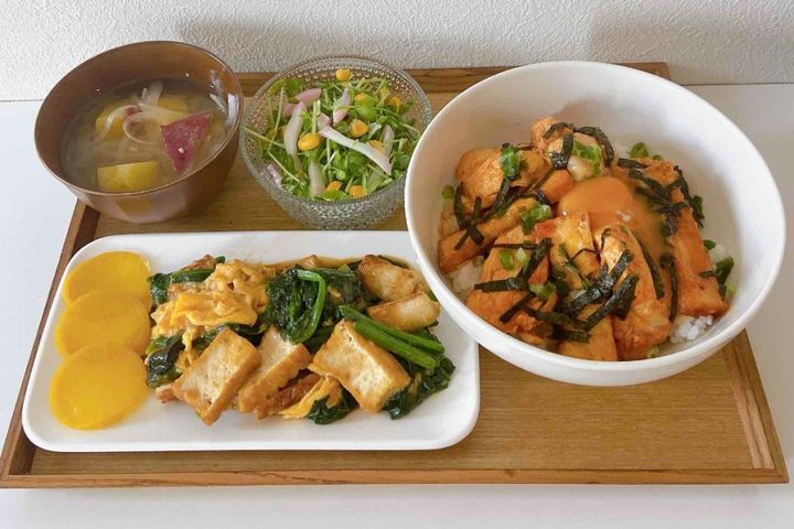「おかずは3品以上を心がけています。副菜は、切るだけの冷奴や、レンチンでパパッと作れるものを多く活用して、あまり手はかけません」(miiさん)