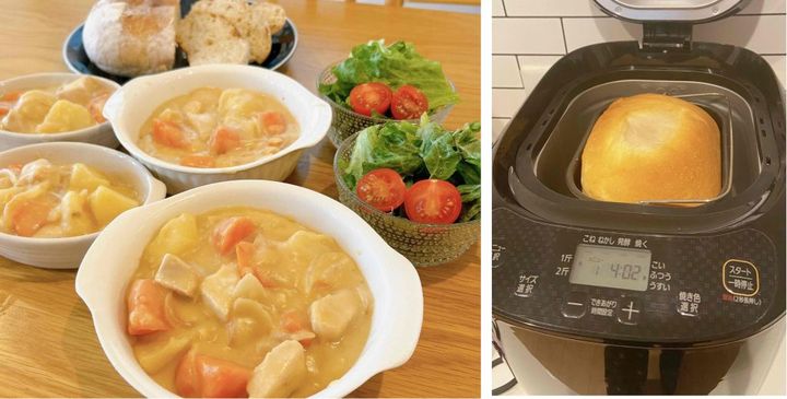 「週末の朝は、ホームベーカリーでパンを手作り。夜はシチューを煮込むだけ」(miiさん)