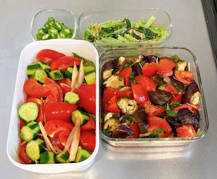「わざわざ作り置きを作ることはしません。月曜日に副菜を多めに作って取り分けておき、翌日以降に使い回しています」(miiさん)