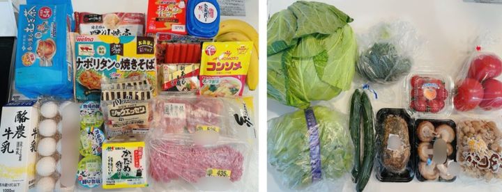 【1週間で購入した食材】 (朝食、昼食分含む)