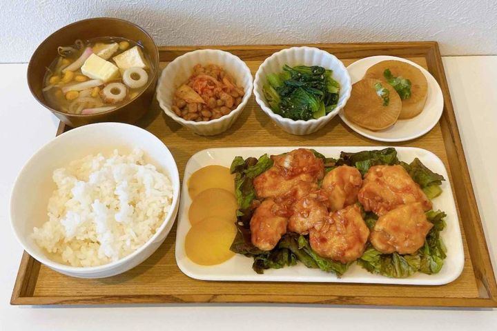 鶏チリ/納豆キムチ/小松菜おひたし/大根バターポン酢ソテー/豆腐のみそ汁