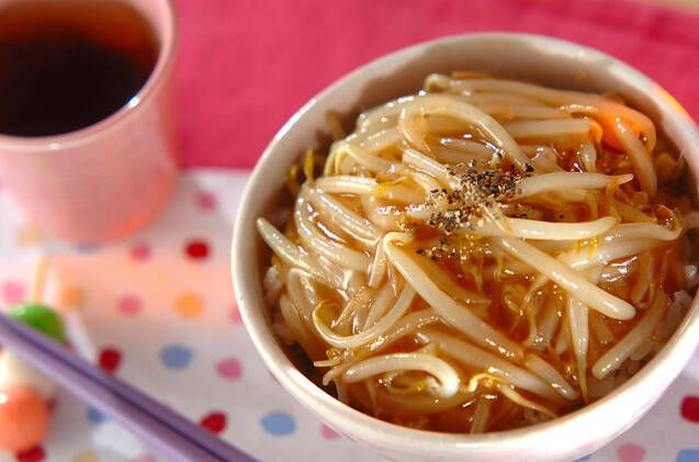 モヤシのシャキシャキ食感をいかした5分で完成の節約丼。お財布がさみしい時や忙しい日の救世主的な万能レシピです。