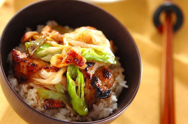 梅干しをベースにした甘酸っぱい漬けダレに鶏を漬け込んで焼くスペシャル丼。ごはんの上にキャベツをしいて、焼いた鶏と梅ダレをかけて食べましょう。冷めてもおいしい!お弁当にも。