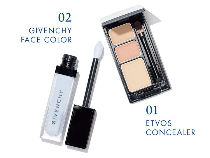 step01.ミネラルコンシーラーパレット ベージュ SPF36・PA+++ 4,950円/エトヴォス step02.プリズム・リーブル・スキンケアリング・コレクター ブルー 11mL 4,620円/パルファム ジバンシイ